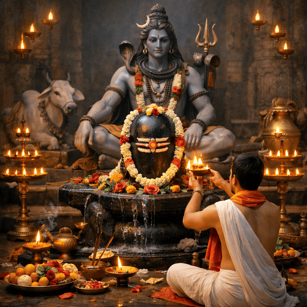 • शिवलिंग • गंगाजल • दूध • दही • घी • शहद • शक्कर • पंचामृत • बेलपत्र • धतूरा • भांग • सफेद फूल • चंदन • अक्षत (चावल) • रोली (कुमकुम) • नारियल • फल • अगरबत्ती • धूप • घी का दीपक • कपूर • कलश • पान के पत्ते • सुपारी • मौली